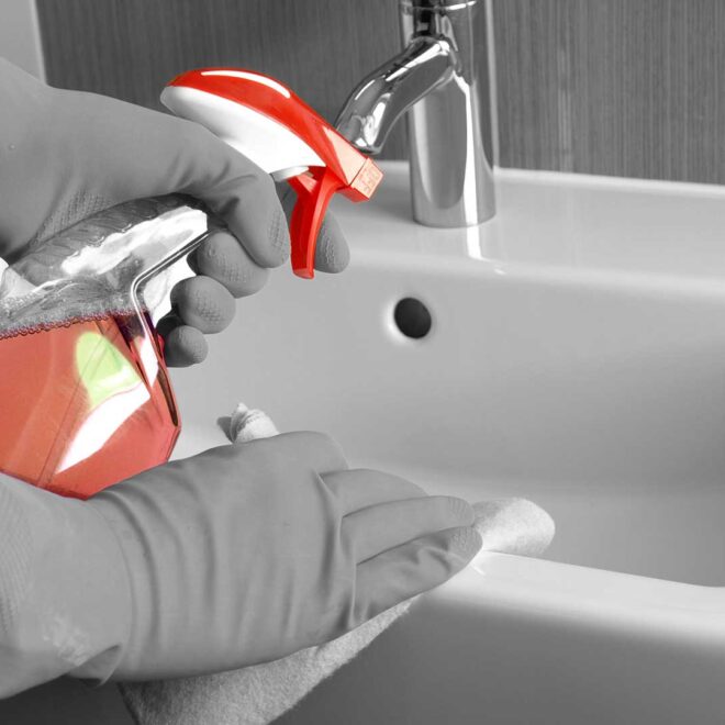 Most people underestimate the amount of time it takes for cleaning products to really get to work, especially when it comes to limescale removers and disinfectant. Rather than spraying and wiping immediately, our cleaners know that they’ll get the best results when they leave the product to sit for a while before scrubbing it away. If you’re looking to replicate this yourself, 30 seconds is usually long enough to get a really deep clean on your surfaces.
